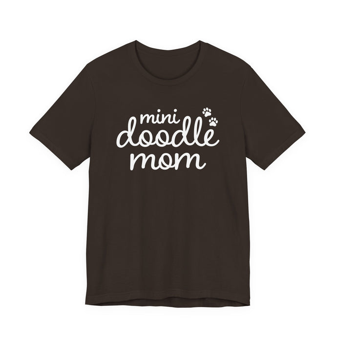 black t-shirt sith grayscale doodle dog face sith black sunglasses with words underneath that read The Mini Dood